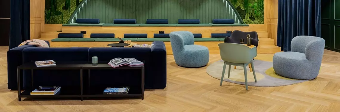 Grupa OLX swoją siedzibę ma w Poznaniu w biurowcu Maraton. Wcześniej zajmowała już 4 i 5 piętro budynku, ale ze względu na ciągły rozwój postanowiła wynająć kolejne przestrzenie. I tak w połowie 2021 roku rozpoczęła się inwestycja, która miała dostosować do potrzeb firmy także piętra 2 i 3. To był specyficzny czas po szczycie pandemii. Klient miał świadomość, że musi stworzyć dla pracowników przestrzeń, w której poczują się równie swobodnie jak w domu podczas home office. Tak, by chcieli tu wrócić. Dlatego biuro łączy ergonomię z domową przytulnością, a nowoczesne rozwiązania, jak elektryczne biurka czy specjalistyczne oświetlenie, funkcjonują tu obok komfortowych sof i miękkich dywanów.