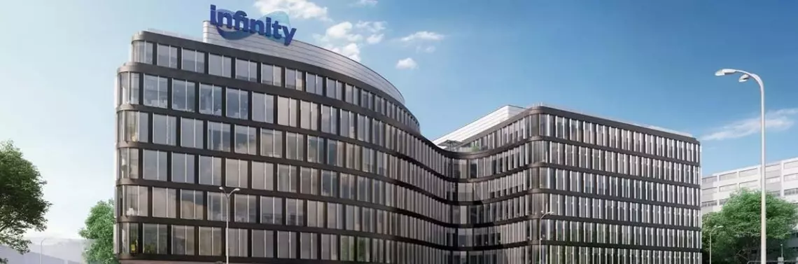 Infinity wyróżni doskonale wpisująca się w najnowsze trendy architektoniczne bryła, przypominająca znak nieskończoności, imponujące lobby, w którym znajdą się specjalnie zaaranżowane miejsca dla gości odwiedzających budynek oraz przestronny taras na dachu budynku. Projekt architektoniczny Infinity przygotowała pracownia AHR Architects, a za komercjalizację odpowiedzialna jest firma doradcza JLL. Zakończenie całej inwestycji zaplanowano na I kwartał 2023 r.