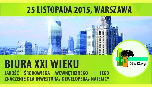 Serdecznie zapraszamy na konferencję „Biura XXI wieku – czyli jakość środowiska wewnętrznego i jego znaczenie dla inwestora, dewelopera, najemcy”, która odbędzie się 25 listopada 2015 r. w Warszawie (Atrium Centrum al. Jana Pawła II 27)