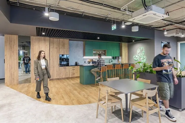 Współczesne biuro nie ma jednego modelu, ale wyraźnie zmienia się jego struktura. Rosną strefy wspólne, które przestają być dodatkiem, a stają się centralnym elementem przestrzeni. To miejsca spotkań, współpracy i pracy w mniej formalnym środowisku. Biuro coraz częściej działa jako platforma interakcji, a nie zbiór stanowisk pracy.