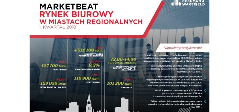 W 2018 roku w Krakowie i we Wrocławiu zostanie oddane do użytku tylko o 20% i 30% nowej powierzchni biurowej mniej niż w Warszawie.
