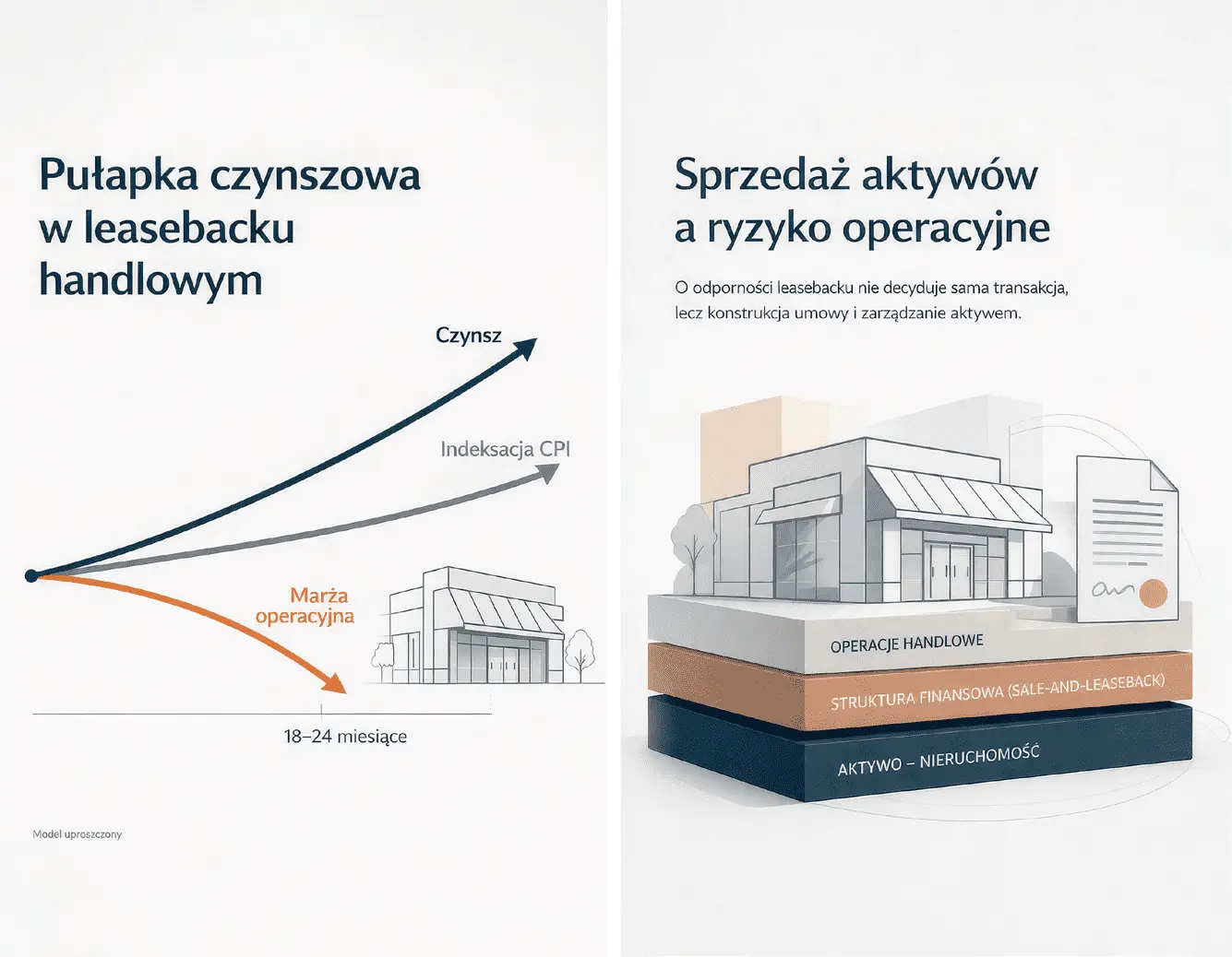 Wspólny wniosek z obu przykładów jest czytelny. Leaseback w Polsce coraz częściej funkcjonuje jako narzędzie portfelowe, a nie jednostkowe zdarzenie. Dla inwestora i asset managera oznacza to wyraźne przesunięcie akcentu. Pytanie nie brzmi już tylko: „Czy to jest leaseback?”, ale przede wszystkim: „Czy ten leaseback jest odporny na inflację i spadek obrotów?”. W praktyce oznacza to odejście od koncentracji na samej długości najmu na rzecz analizy amortyzatorów indeksacji, elastyczności operacyjnej, przyszłego CAPEX oraz realnej zdolności najemcy do utrzymania warunków najmu w cyklu rynkowym. W tym sensie te przykłady nie są sensacją, lecz sygnałem dojrzewania rynku.