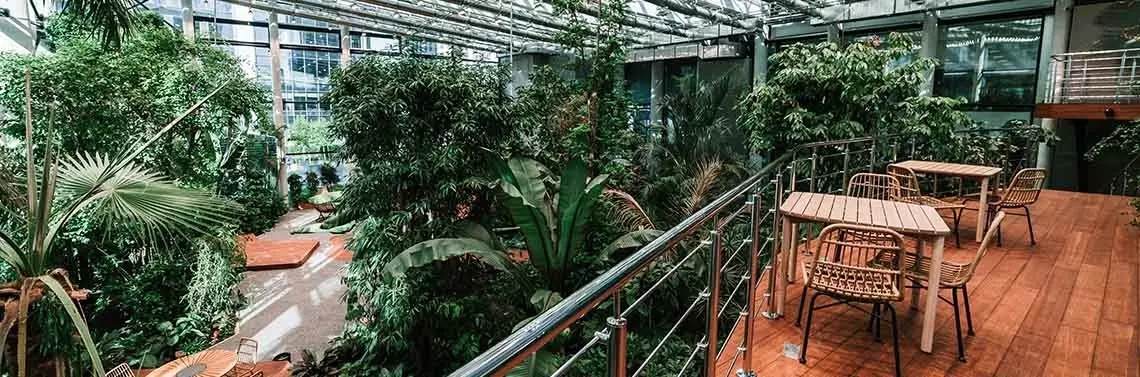 Olivia Garden jest efektem nowatorskiego myślenia o charakterze miejsca pracy, w którym bliskość natury pozytywnie wpływa na samopoczucie i efektywność pracy. Projekt powstał w odpowiedzi na zapotrzebowanie rezydentów centrum biznesowego oraz z myślą o mieszkańcach Trójmiasta, dla których jest to kolejna atrakcja i propozycja spędzenia czasu wolnego. Olivia Garden została podzielona na 4 strefy, aby oferować przestrzeń dla różnych aktywności. W cieniu wkomponowanej w rozległą antresolę czarnej oliwki Bucida Buceras znajduje się bar w stylu Tiki, serwujący świeże koktajle i lekkie dania kuchni orientalnej. Ogród doskonale sprawdza się jako przestrzeń do organizacji spotkań towarzyskich i biznesowych, samodzielnej pracy i odpoczynku oraz organizacji wykładów, warsztatów czy koncertów, gdyż znajduje się w nim amfiteatr, schowane wśród gęstej roślinności stoliki oraz komfortowe miejsca relaksu.
