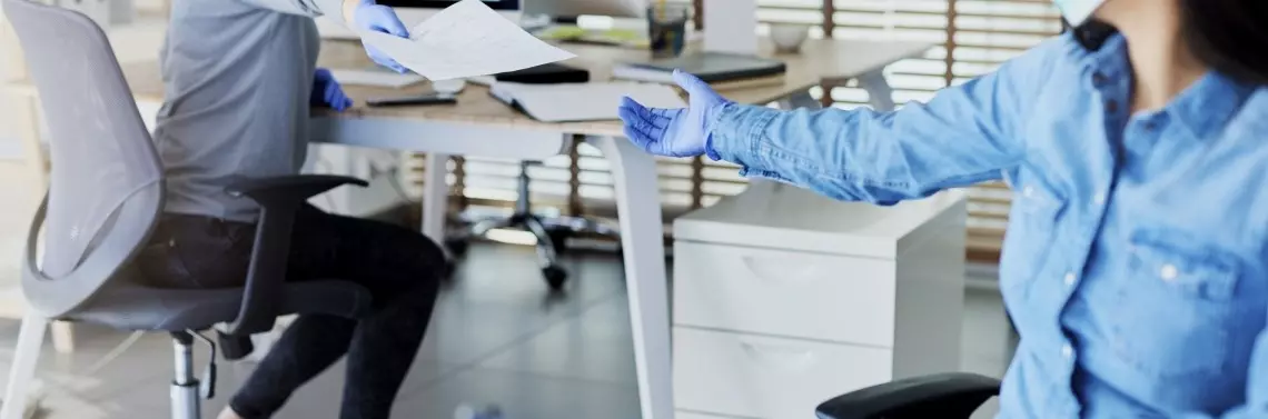 Należy przygotować zasady ruchu wchodzącego do biura i wewnętrznego po biurze, w miarę możliwości rozdzielając wejście od wyjścia, silniej monitorując wejścia i ograniczając je tylko do osób upoważnionych. Nadal dostępne powinny być środki dezynfekcji i inne wymagane produkty ochronne (rękawiczki, maseczki etc.). Tam, gdzie to uzasadnione, stoją podajnik...