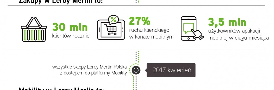 4 kwietnia 2017 roku sieć handlowa Leroy Merlin Polska zakończyła wdrożenie platformy cyfrowej Mobility. Tym samym klienci w całej Polsce mogą już za pośrednictwem doradców klienta korzystać z obsługi w sklepach z wykorzystaniem technologii mobilnych. To pierwszy zakrojony na tak szeroką skalę projekt cyfryzacji przedsiębiorstwa handlowego w Europie.