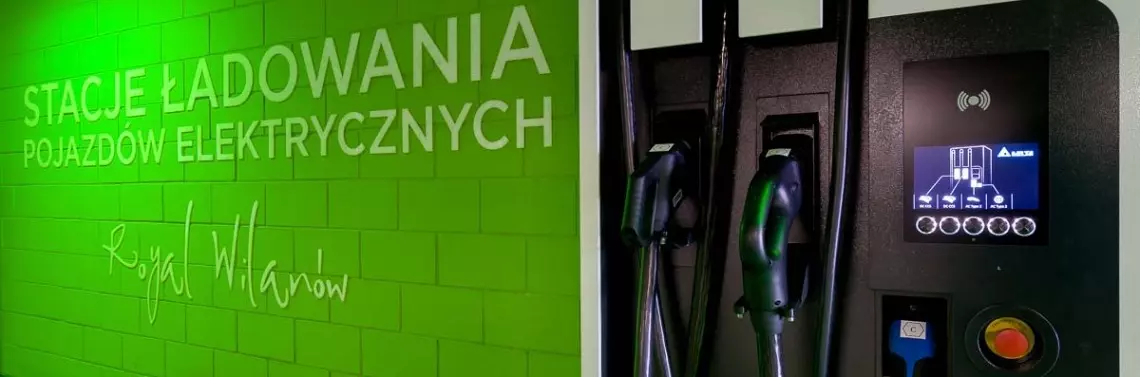 Nowa, czterostanowiskowa, ogólnodostępna stacja ładowania aut elektrycznych działa od 22 lutego. To w tej chwili jedyne miejsce o takich parametrach (mocy 100 kW) w Warszawie, przystosowane do obsługi wszystkich, a nie tylko wybranych modeli samochodów. Stacja zlokalizowana jest na poziomie -1, w ramach parkingu podziemnego budynku usługowo-biurowego Royal Wilanów, położonego w centralnym punkcie dzielnicy – naprzeciwko wilanowskiego ratusza. Zaletą stacji są aż cztery stanowiska ładujące, co umożliwia zasilenie do czterech pojazdów jednocześnie. Dwa z nich dysponują szybkim złączem typu DC CCS, pozostałe posiadają złącze standardowe typu AC.