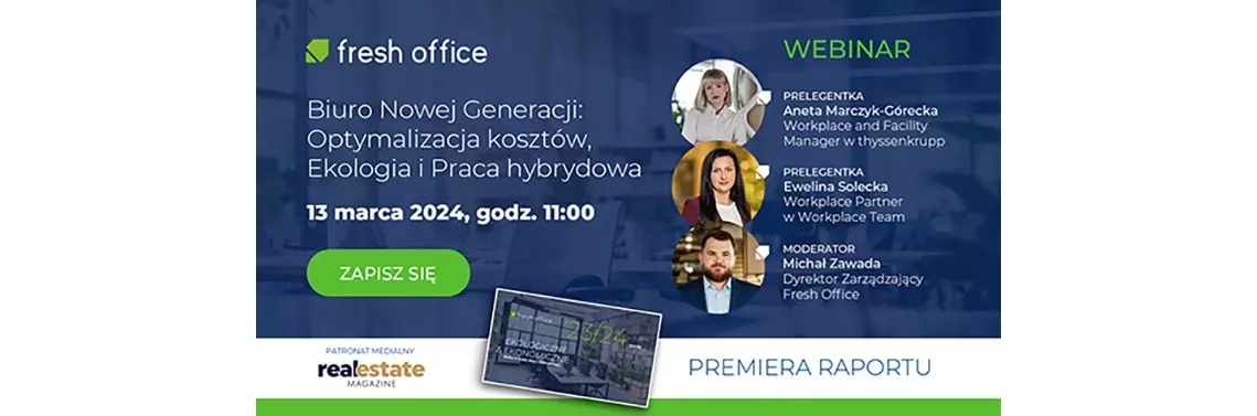 Webinar będzie również okazją do zapoznania się z naszym najnowszym raportem: „Ekologiczne i Ekonomiczne Biuro w Dobie Pracy Hybrydowej”. Michał Zawada Dyrektor Zarządzający Fresh Office Poland Sp. z o.o.