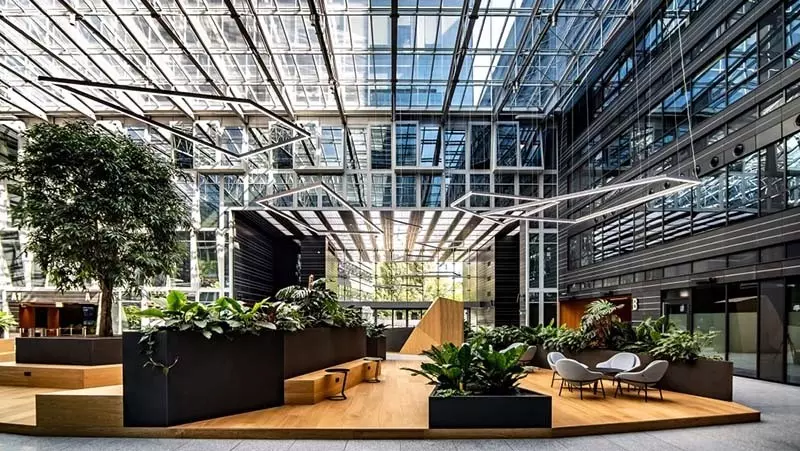 Wola Center to flagowy budynek biurowy Hines zlokalizowany na warszawskiej Woli. Dzięki nowoczesnemu lobby, systemowi informacji wizualnej oraz przestrzeniom wspólnym doskonale się prezentuje oraz zapewnia komfort dla najemców i gości. W atrium znajduje się recepcja i przestrzeń coworkingowa, a także strefa relaksu otoczona naturalną zielenią i kilkumetrowym drzewem znajdującym się w lobby.