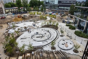 Przy Rondzie Daszyńskiego trwają intensywne prace związane z nowatorską wizją utworzenia nowej przestrzeni miejskiej w ramach placu Europejskiego, przy którym powstaje Warsaw Spire.