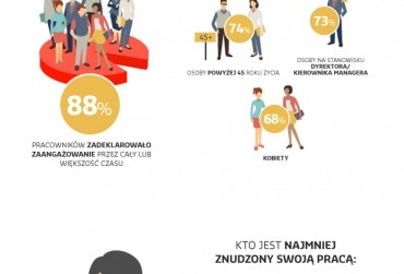 Najbardziej zaangażowana w swoją pracę jest płeć piękna – 68% spośród ankietowanych kobiet powiedziało, że zawsze lub prawie zawsze angażuje się w swoją pracę.